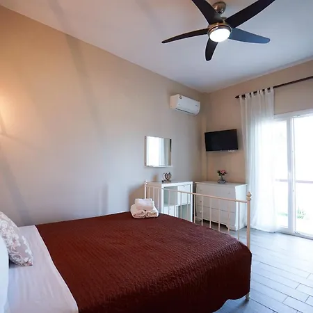 Nejbližší letiště je Mezinarodni letiste Korfu, 10 km od tohoto plážového apartmánu ve městě Gouvia. Součástí ubytování je rovná střecha k opalování, sluneční terasa a patio.